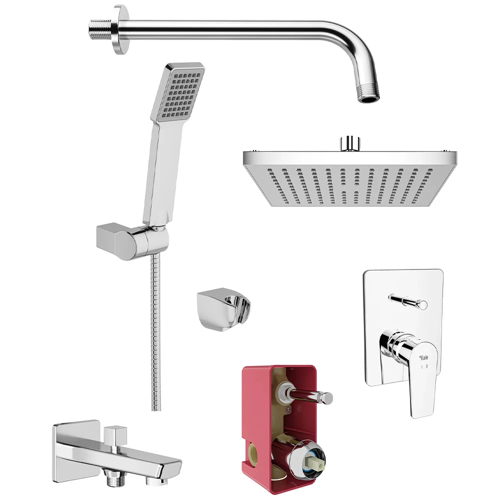Kale Rain 20 Cm Yuvarlak Tepe Duşu20 cmPaslanmaz çelikKireci kolay temizleyen esnek su akış ağızcıklarıKale Rain Tepe Duşu Duvardan DirsekUzunluk 33 cmDuvardan monteG1/2” su girişiKale Rain S110 3 Fonksiyonlu El Duşu Takımı3 Fonksiyonlu: Normal,... Kale Rain 20 Cm Yuvarlak Tepe Duşu20 cmPaslanmaz çelikKireci kolay temizleyen esnek su akış ağızcıklarıKale Rain Tepe Duşu Duvardan DirsekUzunluk 33 cmDuvardan monteG1/2” su girişiKale Rain S110 3 Fonksiyonlu El Duşu Takımı3 Fonksiyonlu: Normal, Rain, MassageEl duşu ön yüz çapı: 78 mmSabit el duşu tutucuOynar el duşu tutucu1,5 m spiral hortumKale Verde Yönlendiricili Çıkış UcuKonfor uzunluğu: 130 mmKilitlemeli duş kumandasıHoneycomb akış düzenleyiciKale Verde Sıva Üstü Ankastre Banyo BataryasıRozet takımı ve kumanda kolu içerir.35 mm seramik kartuşBasmalı tip yönlendirici2 Fonksiyonlu: Tepe duşu, el duşu, çıkış ucu,su jeti uygulamalarından ikisi kullanılabilir.Kale K-Box Sıva Altı Ankastre Banyo BataryasıG 1/2” su girişi/çıkışıİki fonksiyonlu kullanılabilir.Montaj sonrası test/temizlik için özel plastik kapatma.Kale Verde Ankastre Duş Seti 310201200147