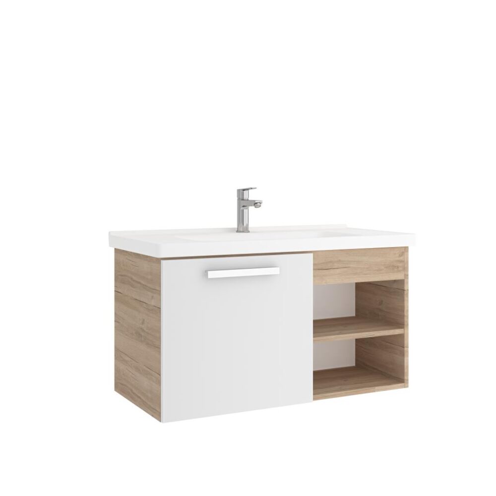 Bilgi Al: Kale Mare 100Cm Lavabo Dolabı Beyaz/Meşe (Lavabo Dahil) 310300104511