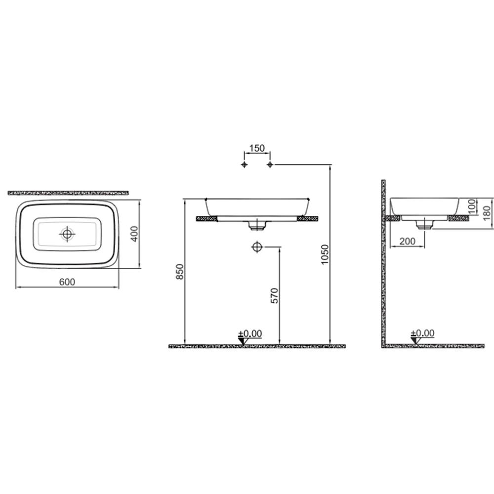 60x40 cmArmatür deliksiz, su taşma deliksizDuvardan ankastre ve tezgahtanYüksek lavabo bataryası ile uyumluSeramik novatik lavabo süzgeci dahilKale Dove 2.0 60x40 Cm Mat Siyah-Bronz Dikdörtgen Çanak Lavabo 310200200621